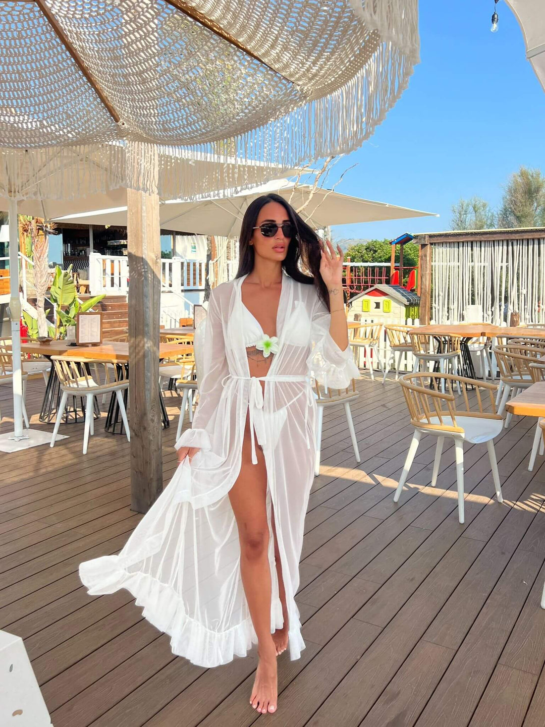 Bikini bianco coprente con coppa preformata, compreso di molletta Monoi. La modella in foto è...
