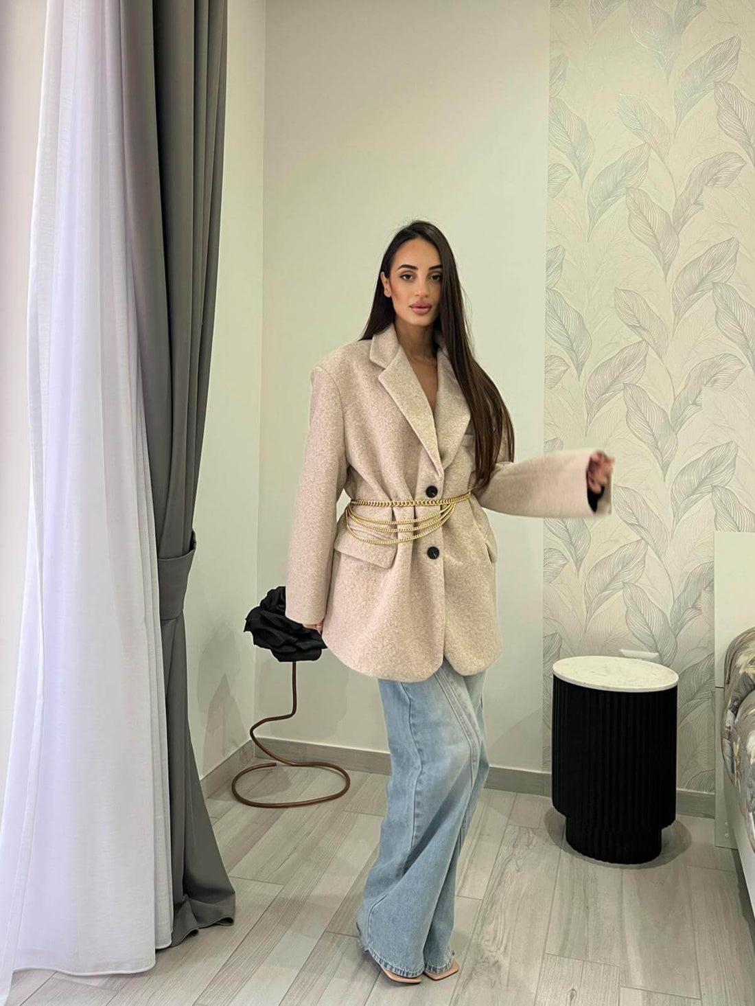 Giacca tessuto cappotto, spalline imbottite con bottoni sul fronte
