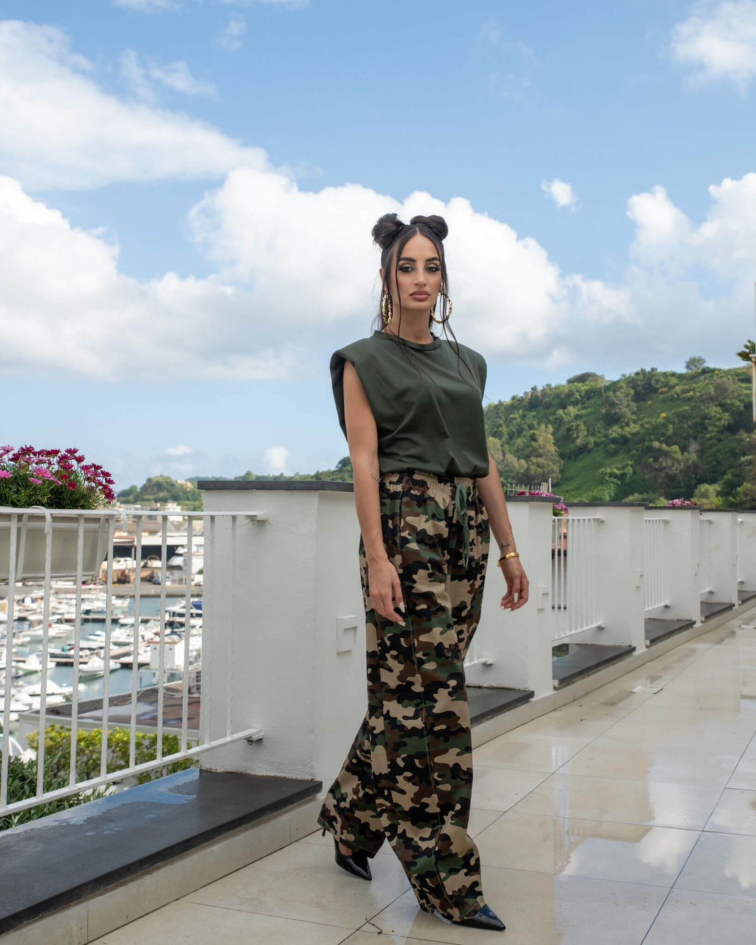 Pantalone militare con elastico in vita