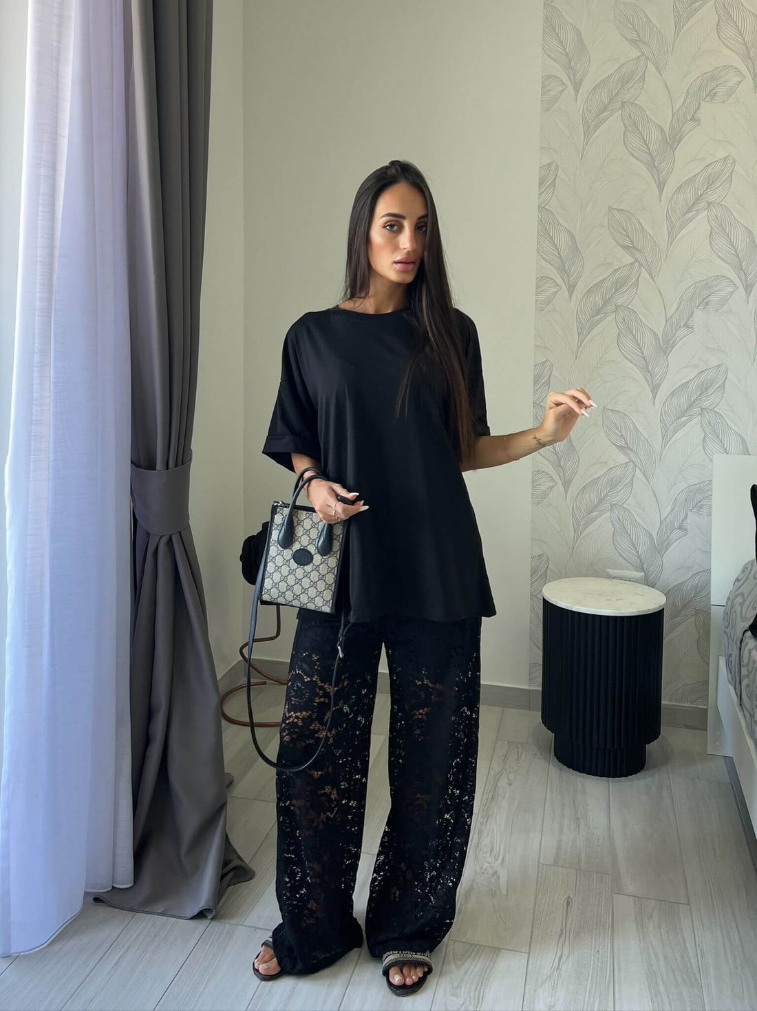 Pantalone in pizzo elasticizzato.