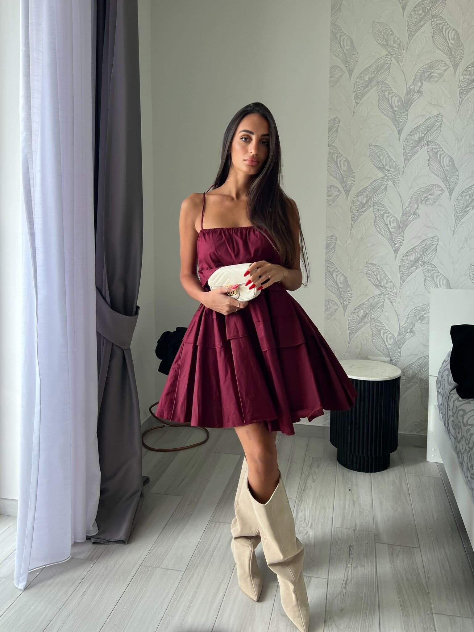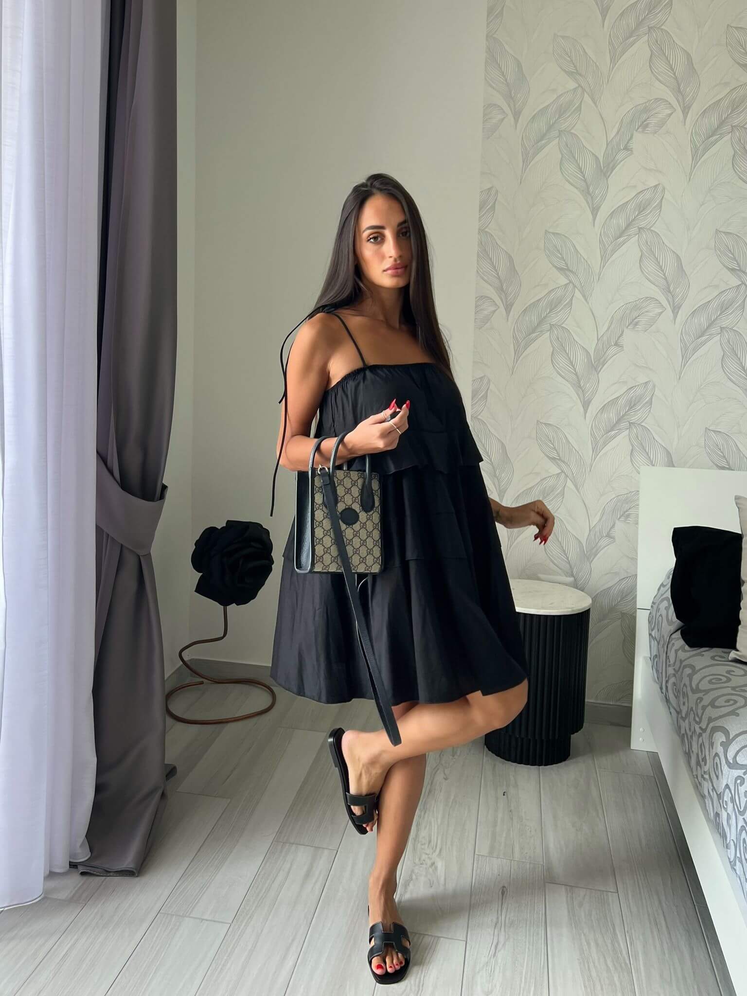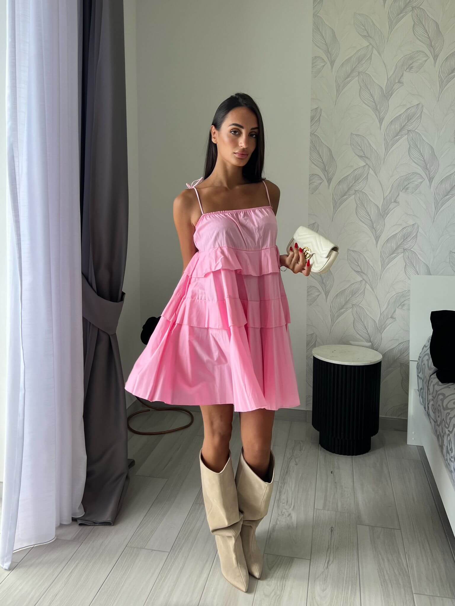 Abito mini elasticizzato, bretelle regolabili.