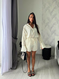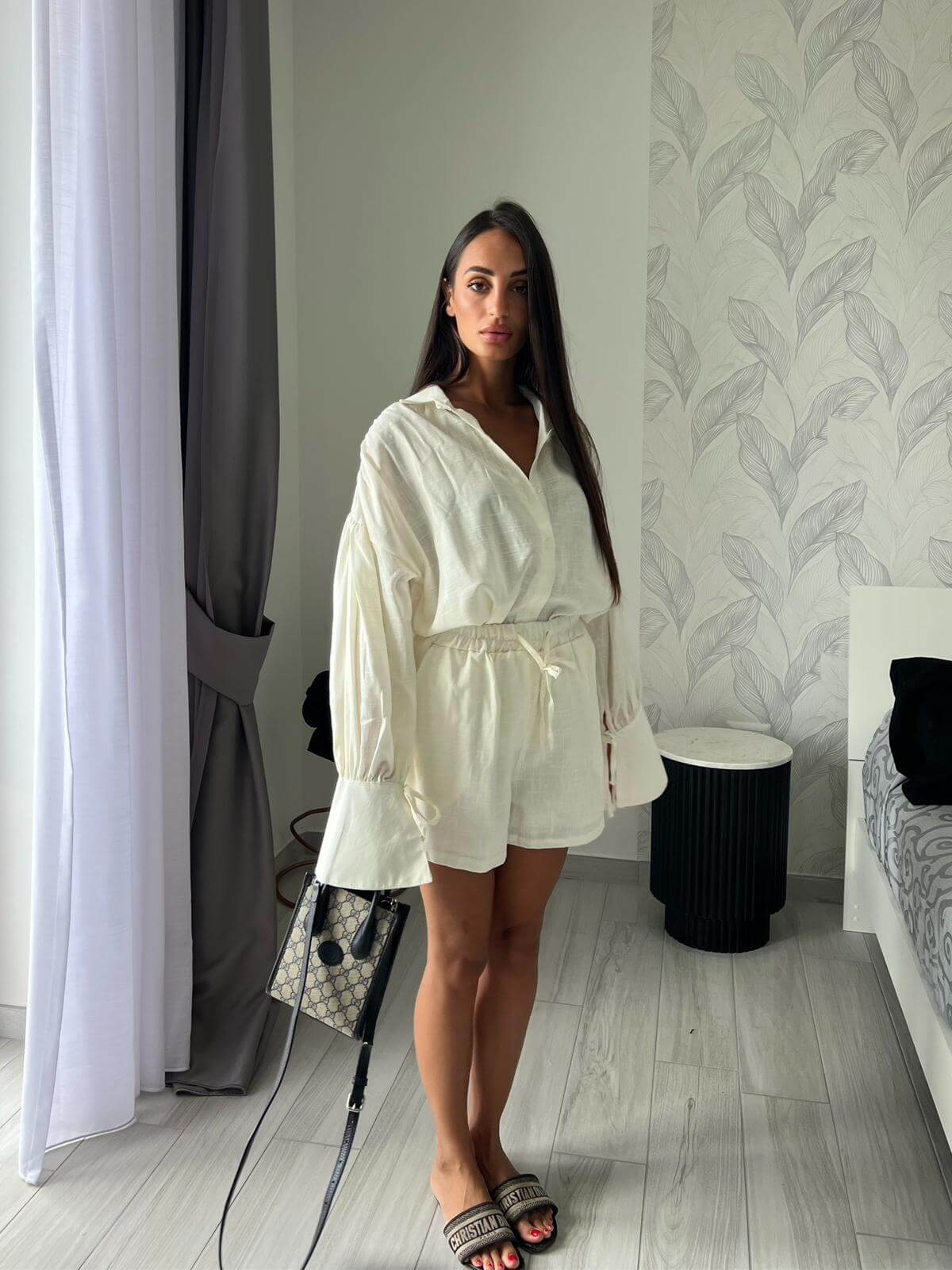 Coordinato due pezzi composto da pantaloncino e camicia con manica a campana