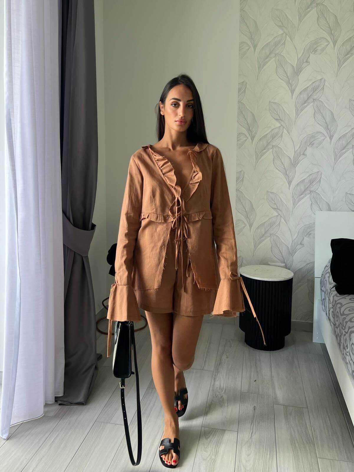 Coordinato due pezzi composto da pantaloncino e camicia.