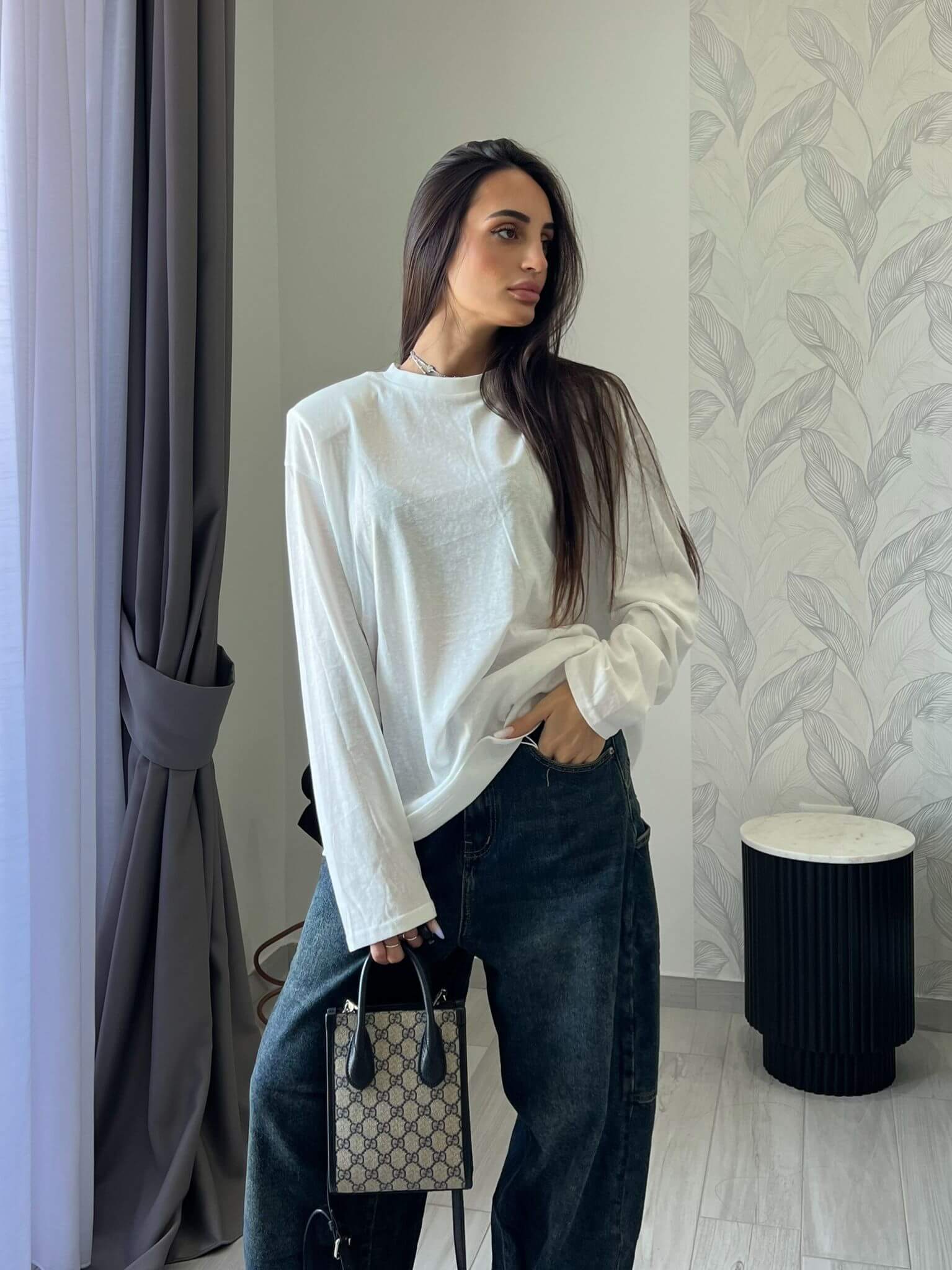 Maglia in cotone con spallina strutturata