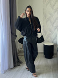 Pantalone in simil pelle, felpato all'interno con tasconi laterali